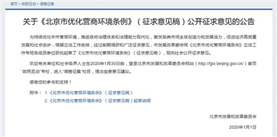 1月1日,北京市发改委在官网发布公告,就《北京市优化营商环境条例》(征求意见稿)公开征求意见。