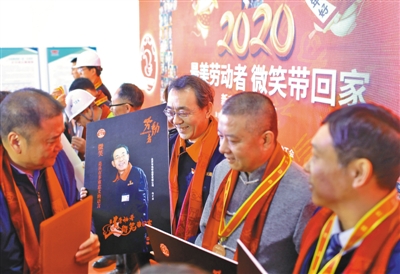 昨日,北京城市副中心,获得“首都最美劳动者”荣誉的劳动者们上台领奖。当日,由北京市总工会主办的“最美劳动者 微笑带回家”大型公益活动颁奖仪式暨城市副中心“两节”送温暖慰问活动举行。10名一线劳动者获评“首都最美劳动者”,千余名劳动者获赠“微笑”照,万余劳动者获赠新春“福包”。新京报记者 浦峰 摄影报道