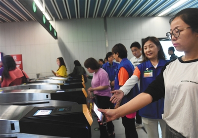 昨日,乘客在地铁8号线奥林匹克公园站扫码出站。当日,北京市轨道交通全网(不含西郊线)开始支持刷二维码乘坐。记者体验发现,刷码进出站过程不到1秒钟,同时手机在断网环境下也能实现扫码过闸。而当手机出现没电等无法正常刷二维码出站的情况时,乘客若未携带现金可先行出站,第二天再通过App进行补票。新京报记者 王贵彬 摄