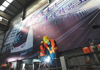 11月22日,中铁十六局集团北京地铁钢筋集中加工厂,工作人员在施工作业。当天,位于昌平未来科技城中铁十六局集团北京地铁钢筋集中加工厂正式投产作业。作为北京地铁在建工程配套的大型全自动数控化钢筋加工厂,该厂引入大型自动化钢筋加工设备,集中加工地铁建设过程中大量使用的钢格栅、小导管等钢筋产品,能够满足多个地铁项目的钢筋需求。新京报记者 王贵彬 摄