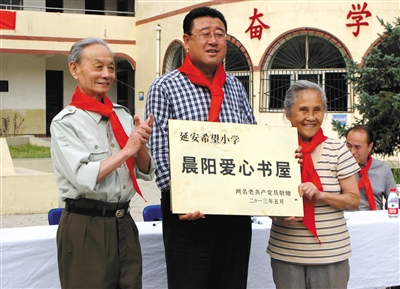 陈荣超,今年87岁,原解放军装甲兵指挥学院学员大队政治委员。自1988年退休后,和同为退役军人的老伴——今年86岁的杨玉仙一起,省吃穿攒工资,在四川、内蒙古贫困地区建立了2所“希望学校”。今年开始,他们又制订了传承红色基因的“三年计划”,建书屋捐图书,完成一名共产党员的初心与使命。
