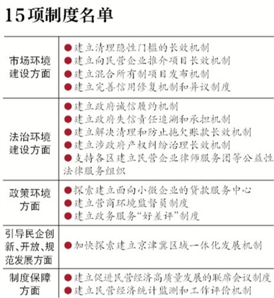 北京市委市政府发文,提出建立清理隐性门槛的长效机制、政府诚信履约机制、解决清理和防止拖欠账款长效机制、促进民营经济高质量发展的联席会议制度等15项制度,支持和引导民营企业化危为机。其中,部分制度北京已经开始实施,例如营商环境监督员制度、政务服务“好差评”制度等。