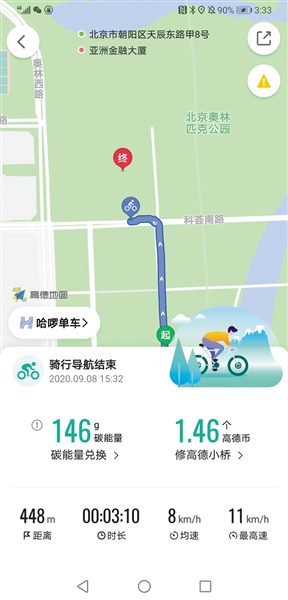 昨日,服贸会交通领域分论坛——“第6届世界大城市交通发展论坛”举办。会上,北京市交通委等有关部门发布了“绿色出行碳普惠激励措施”,启动“MaaS出行 绿动全城”行动。市民采用公交、地铁、自行车、步行等绿色方式出行时,应用高德地图、百度地图APP进行路径规划及导航,出行结束后即可获得对应的碳能量,可转化为公共交通优惠券、购物代金券等多样化奖励。