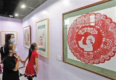 昨日,朝阳区文化馆,市民观看抗疫优秀剪纸作品展。当日,朝阳区文化馆恢复开放,并举办了“向美而生——新时代美好生活”主题活动。活动通过“共克时艰抗疫同行”抗疫艺术展形式回顾抗疫期间的动人故事、感人事迹,充分展现中国力量与精神。新京报记者 王贵彬 摄影报道