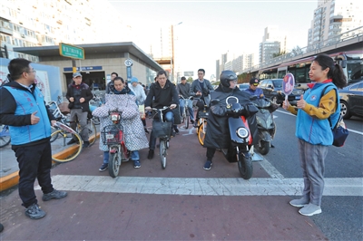 平时是与各式实验器材打交道的科研人员,但从两年前开始,他们又有了新的身份——官园路口的“礼让斑马线”志愿者。2017年,北京市启动“礼让斑马线专项行动”示范路口试点时,北京市科学技术研究院作为第一批参与单位认领了示范路口,而后一直坚持了下来,每年都有近百名工作人员、科研工作者参与志愿活动。