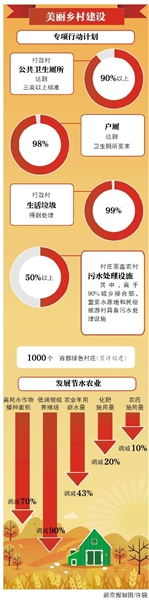 到明年底,北京98%的户厕达到卫生厕所要求,99%的行政村生活垃圾得到处理,农村污水处理设施村庄覆盖率将超过50%。