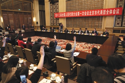 昨日上午,全国人大北京代表团第三次全体会向中外媒体开放,71家中外媒体百余记者参加。北京市常务副市长张工、副市长张建东、联想集团董事长杨元庆等10名人大代表现场回答了记者提问。