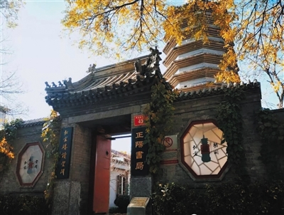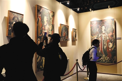 前日,法海寺藏经阁,游客在观看纯手工打造和绘制的16幅精品临摹壁画。
