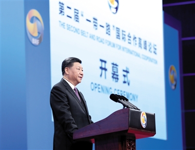 国家主席习近平26日在北京国家会议中心出席第二届“一带一路”国际合作高峰论坛开幕式,并发表题为《齐心开创共建“一带一路”美好未来》的主旨演讲,强调共建“一带一路”为世界各国发展提供了新机遇,也为中国开放发展开辟了新天地。面向未来,我们要秉持共商共建共享原则,坚持开放、绿色、廉洁理念,努力实现高标准、惠民生、可持续目标,推动共建“一带一路”沿着高质量发展方向不断前进。