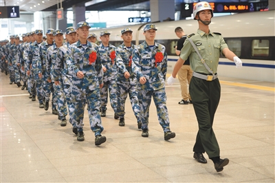 “祝你们一路顺风,早传捷报!”昨天上午,今年首批起运的250名北京新兵从北京南站出发,前往陆军第80集团军和海军北海舰队报到。这是今年首批起运的北京新兵,来自东城、西城、朝阳、海淀等11个区。今年北京市新兵起运从昨天开始,至9月底结束。北京铁路局和驻局军代处高度重视新兵运输工作,为使运输更加快捷高效、让新兵更加轻松舒适,今年运送新兵的列车80%以上为高铁动车。