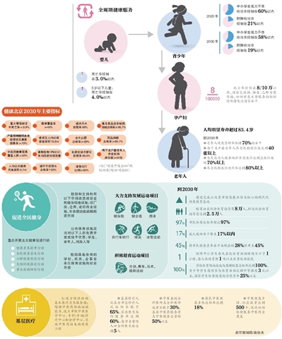 昨天下午,北京市卫计委发布《“健康北京2030”规划纲要》,提出了今后十几年健康北京建设的总体战略和总目标,规划了未来北京市的健康蓝图。在这张蓝图上,除了《“健康中国2030”规划纲要》全部13项指标外,还增加了重大慢性病过早死亡率、中医药健康服务覆盖人群等15项指标。