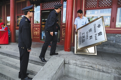昨日5时许,刘午早早来到前门箭楼。巡街中,观察人群中是否有尾随游客兜售旅游商品及从事无照餐饮的人员。
