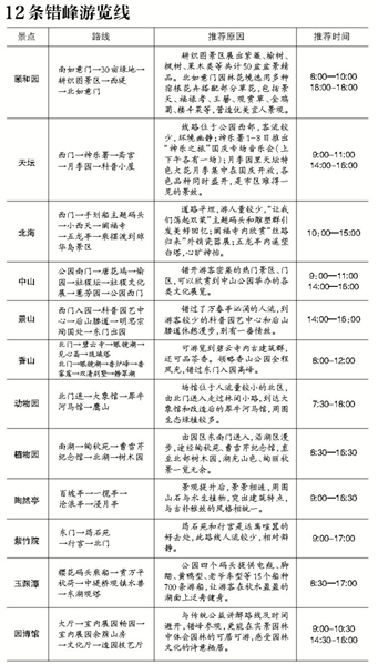 新闻报道市属公园首推12条错峰路线