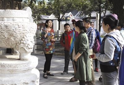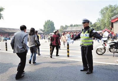 新京报讯 (记者信娜)昨日是国庆假期第七天,约34万游客同游市属公园。记者了解到,高峰时段,市属各公园在重要核心景区日游客量接近最大承载量时,暂缓暂停售票、暂时临时限流。