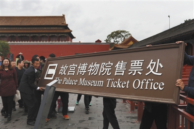 新京报讯 (记者王俊)故宫昨日正式实行网络售票,故宫售票处同日摘牌,实体票将不复存在。“92年历史的售票处结束了它的历史,人们可以利用更先进的技术走进故宫博物院参观”,故宫博物院院长单霁翔表示。