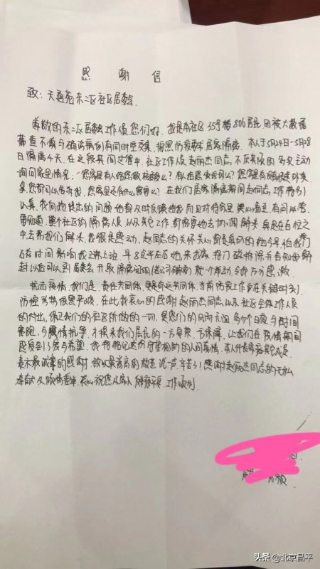 近日,天通苑南街道天通东苑第二社区(以下简称东二社区)工作人员赵丽杰收到了居民的感谢信,一笔一划透着情深意切。这封手写感谢信,是居民对社区工作人员最大的认可,更是同心战“疫”,相互守望的见证。