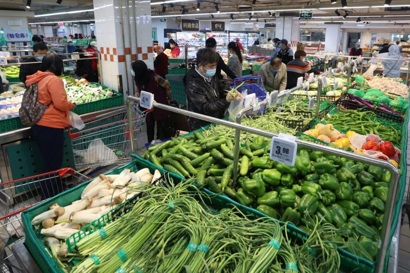5月12日,在北京市新型冠状病毒肺炎疫情防控工作第332场新闻发布会上,市委宣传部副部长,市政府新闻办主任、市政府新闻发言人徐和建表示,所谓封城、静默都是谣言,抢菜更没必要。 5月13日一早,记者就来到位于东城区大佛寺东街的兆军盛菜市场和奥士凯物美朝内菜市场,实地探访市场货源供货情况。商超菜市场内货架物品供应充足,市民有序购物。