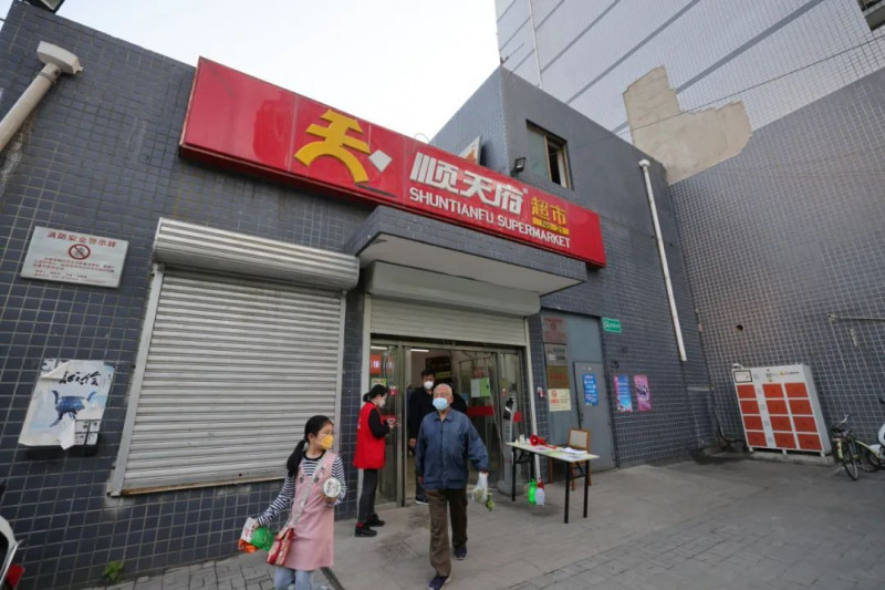 4月28日中午,东城区崇外街道物美、新世界超市、永辉、顺天府四家因疫情防控被封闭的商超,在进行了严格的环境检测和专业消杀等防疫措施后,经过科学评估,符合各项开放条件,恢复正常营业,保障了周边居民的正常生活。