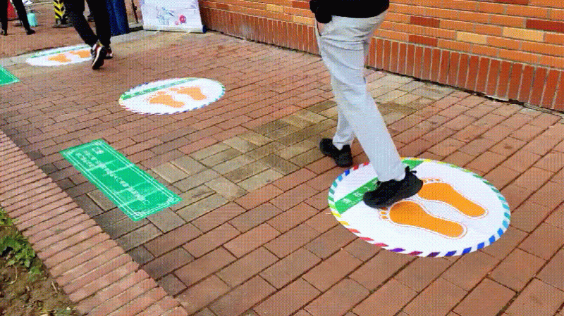 “呼啦圈”变成“两米线”,旁边还附有疫情防控科普贴……今天,东四街道在辖区内5个常态化核酸检测点推出新式“两米线”,通过充满童趣的“呼啦圈”地贴,引导居民有序排队,保持安全距离。