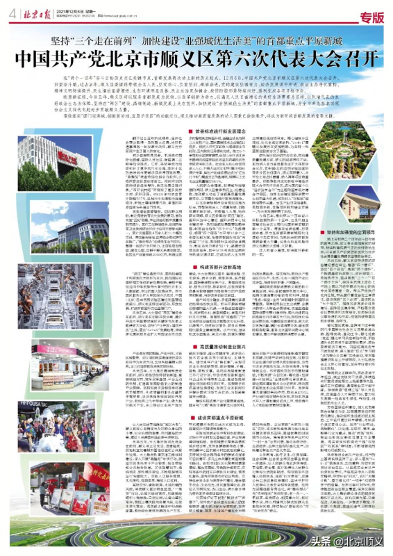 在“两个一百年”奋斗目标历史交汇关键节点,首都发展再次站上新的历史起点。12月6日,中国共产党北京市顺义区第六次代表大会召开。回望奋斗路,过去五年,顺义区委团结带领全区人民,坚定信心、负重前行、砥砺奋进,党的建设坚强有力、经济发展调中有进、政治生态净化重构、精神文明持续提升、民生福祉显著增进、生态环境明显改善、民主法治更加健全、疫情防控形势持续向好,胜利完成各项目标任务。