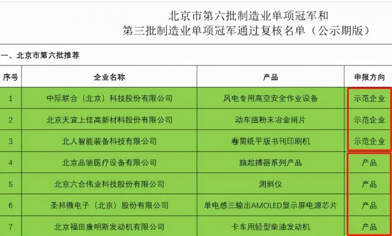 近日,工业和信息化部(简称“工信部”)认定第6批“制造业单项冠军”和第3批通过复核企业名单公示结束,北京市有3家企业入选工信部认定第6批制造业单项冠军示范企业,入选制造业单项冠军产品的企业有4家。还有3家央企通道推荐企业入选。合并统计口径,北京共有10家企业(产品)入选。其中,中关村丰台园企业北京六合伟业科技股份有限公司(测斜仪)入选。