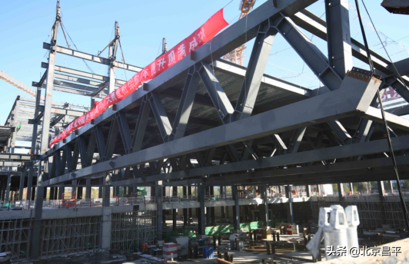 11月8日,昌平区回龙观体育文化公园南部场馆项目中,篮球馆600吨的二层桁架整体实现顺利提升,接下来将进行篮球馆屋面桁架整体提升及后续的金属屋面安装,计划将于年底实现结构封顶。此外,文化活动中心、图书馆等单体钢结构安装也正同步有序进行。