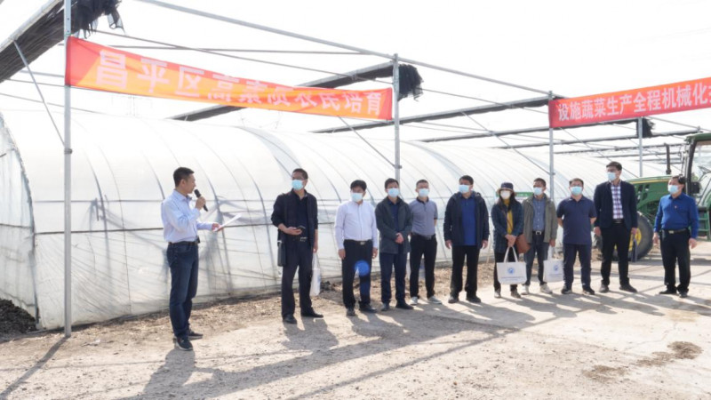 为落实北京市委市政府《关于做好2022年全面推进乡村振兴重点工作的实施方案》,推动我市设施蔬菜生产机械化发展,2022年4月20日,农业农村部农业机械化总站、北京市农业机械试验鉴定推广站联合昌平区农业机械化技术推广站,在北京市昌平区兴寿镇北京鑫城缘果品专业合作社,召开了“北京市设施蔬菜生产全程机械化技术装备现场演示会”。全国农业技术推广服务中心、农业农村部特色经济作物生产全程机械化专家指导组、北京市农业农村局种植业管理处、农机管理处领导及专家,昌平区相关部门领导及技术人员,设施蔬菜种植园区和种植户代表共50余人参加了活动。