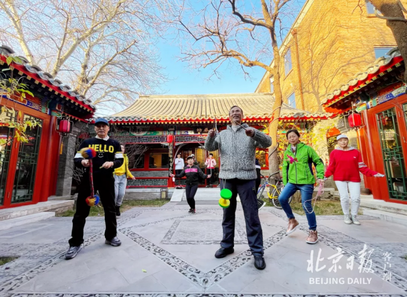滑冰车、抽陀螺、滚铁环……沙井胡同的一座四合院里,一群老街坊们玩起了童年的冰上游戏。原来,这是银龄书院的领读者们正在自编自导自演一部微电影《冬奥情暖四合院》,从编剧到演员,都是已过花甲之年的老人。