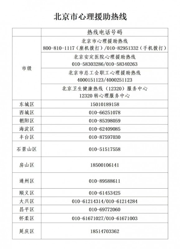 新闻报道保障疫情期间市民心理健康,北京市开通17条心理援助热线