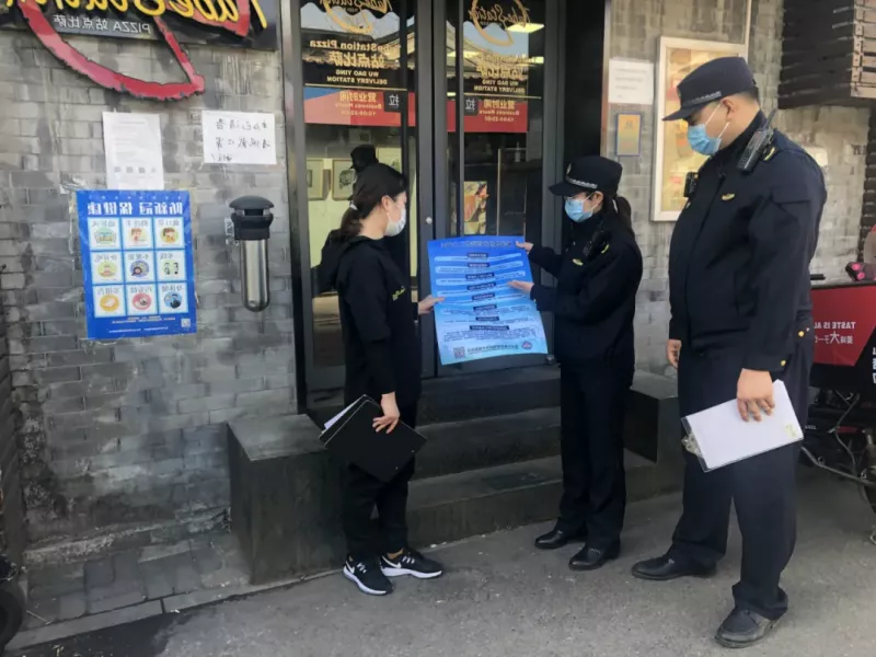 商户陆续复工,但防疫工作仍需常态化进行。安定门街道城管、工商、食药等部门联合组成复工复产“联盟”,一手抓疫情防控、一手抓助力商户复工复产,在确保把关、安全的同时更好地做好服务、促进工作。