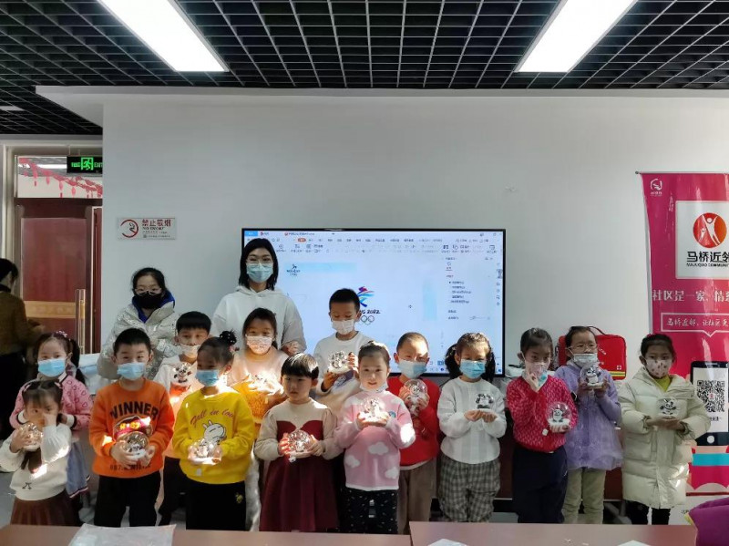 随着北京冬奥会的开幕,愈演愈烈的赛事点燃了马驹桥镇广大群众的冬奥热情。憨态可掬的“冰墩墩”形象也俘获了小朋友们的心。