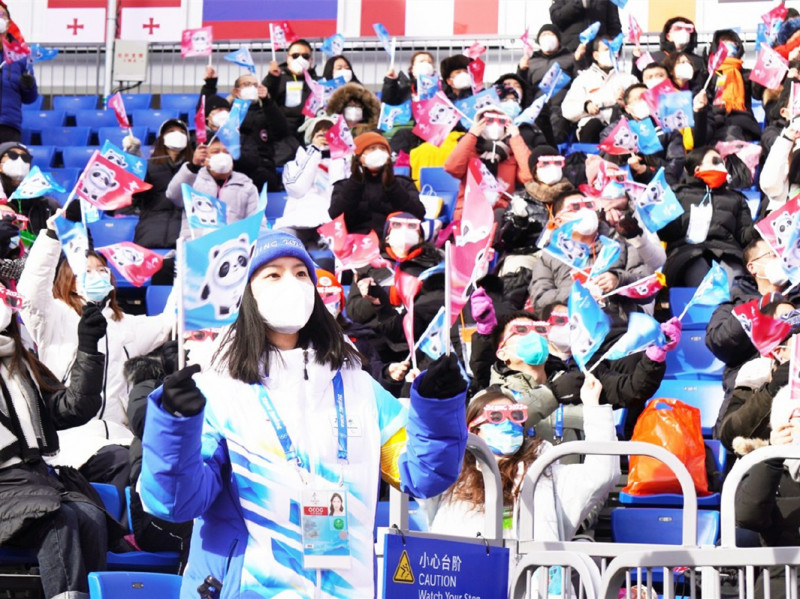 志愿者和看台上的“冰墩墩”旋转、跳跃,他们的步调整齐划一,赢得观众的阵阵掌声……近日,国家高山滑雪中心看台上,一段志愿者与“冰墩墩”斗舞的视频火遍网络。视频中跳舞的志愿者是北京化工大学大三学生徐天然。她说,因为国家高山滑雪中心气温较低,为了带动观众热身,自己才与“冰墩墩”斗舞。“很多人都觉得很治愈,看到这段舞可以给大家传递积极的力量,我也倍感欣慰。”
