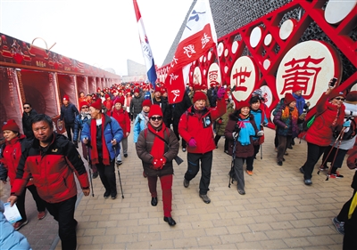 昨日上午,第二届“走向2022迎冬奥延庆海坨冰雪徒步大会”在延庆区世界葡萄博览园举行,2022名徒步运动爱好者齐聚“冰雪之城”,以健康徒步长走的形式,为冬奥助威。