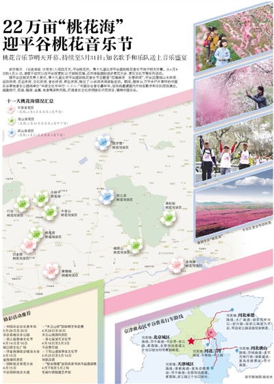 新京报讯 (记者郭超 沙雪良)人间四月天,平谷桃花开。第十九届北京平谷国际桃花音乐节将于明天开幕。从4月8日到5月31日,游客不但可以在平谷欣赏到22万亩桃花海,还可体验国际徒步赏花大会、赏石文化节等系列活动。
