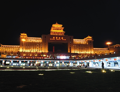 昨晚,夜幕下的北京西站下沉广场灯火通明。当日,北京西站北部下沉广场已具备通行条件,“五一”期间全面开放。下沉广场4000平方米的桥底都被涂成了蓝天白云的颜色,挂起了大红的灯笼,和高架桥上的玻璃天窗形成呼应,增添了节日喜庆的气氛。下沉广场启用后,旅客可通过下沉广场完成在西站北部区域下穿莲花池东路往返穿行,并可从地下通道实现进站、乘地铁、打车、前往公交枢纽等。图/视觉中国