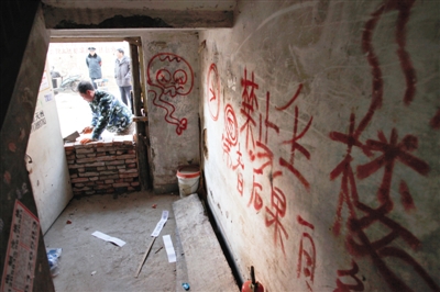 新京报讯 (记者饶沛)朝阳区八里庄东里社区16栋待拆迁楼在部分居民搬走后,开发单位、中介公司将其低价出租。昨日下午,八里庄街道在保证滞留户正常居住生活的前提下,对其他空置的楼门、楼层用水泥封闭,防止被出租。