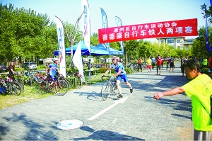 日前,通州区自行车运动协会在通州举办铁人两项比赛。除天然水域游泳项目空缺,整个赛程包括长跑竞速5公里+自行车竞速50公里。来自517自行车俱乐部的大一新生张盛明以107分34秒的成绩夺得冠军。铁人三项运动属于新兴综合性运动竞赛项目,由天然水域游泳、公路自行车、公路长跑三项目按顺序组成,运动员需要一鼓作气赛完全程,极具刺激性和挑战性,最能考验人的意志和体能。