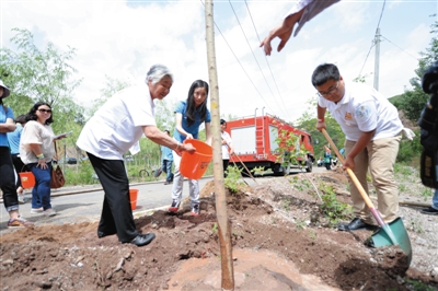 新京报讯 (记者李馨)昨日上午10时许,“我学榜样做公益”绿化志愿系列活动在密云县古北口村拉开序幕。