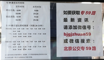 新京报讯 (记者李馨)司机自制运营时刻表,车辆几点发车、几分钟到站,乘客一看便知,如果有疑问,还可以通过微信询问司机。近日,往返于丰台区翠海明苑和德鑫嘉园的短途公交车专59路,引发市民称赞。