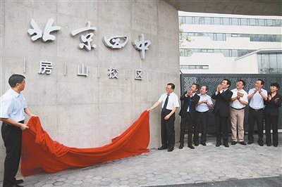 8月31日,北京四中房山校区落成暨开学典礼在新校区举行,北京四中房山校区也迎来了首批新生。2011年4月,北京四中正式引入房山,第二年开工建设。由北京万科负责建设的房山校区,以田园学校为设计理念,并成为中国第一个三星级绿色校园。新京报记者 张旭 报道