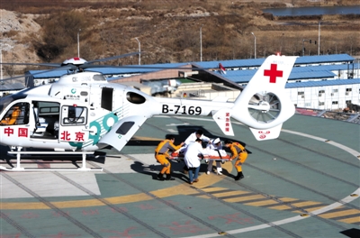 新京报讯 (记者魏铭言 张秀兰)搭载患者的AW139型直升机在京北上空盘旋,最终降落在位于昌平区中关村生命科学园的北京大学国际医院主楼顶停机坪。从降落到患者进入手术室,用时仅5分钟。