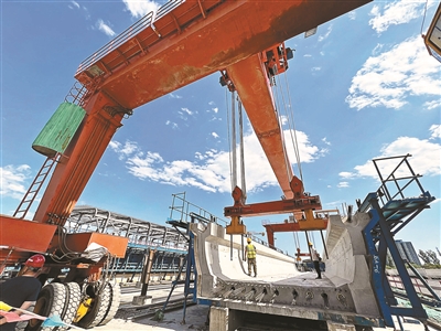 新闻报道轨道交通平谷线高架段开始架梁施工