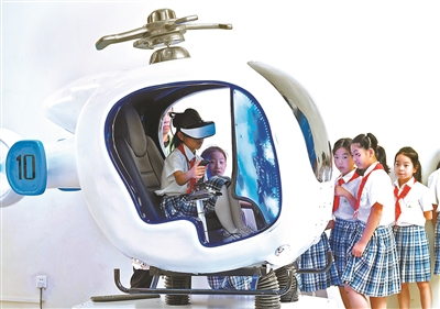 孩子们在少年宫共享大厅体验VR天地行平台 摄影/本报记者 崔峻