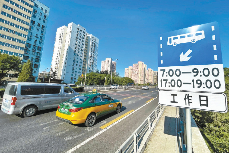 今天是公交专用车道优化调整措施实施后的首个公休日,7时30分左右,在南三环赵公口桥,早晚高峰公交专用道向社会车辆开放,三环主路双向六车道得到有效利用。 本报记者 邓伟 摄