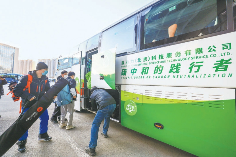 新闻报道坐着氢能源大巴去滑雪登长城