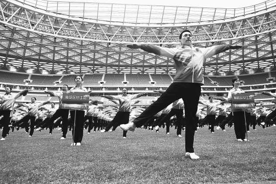 新闻报道绿茵场上千人挥臂做操