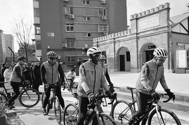 今天上午,首都大学生骑行队伍从清华园车站旧址出发,重走“进京赶考之路”,重温初心。 本报记者 王海欣 摄