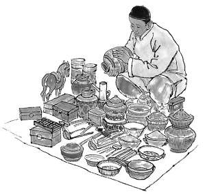 老北京的五行八作、小贩摊铺,用响器或吆喝推销是出了名的,但也有不在此列的,比如卖旧货——我卖你买,可以讨价还价,但不介绍商品,看上了你就买。买回去如果升值了就算赚,如果“打眼”了,那就自认倒霉。而且还有一个规矩,那就是买方不问货物的来源,只看东西,谈价钱。