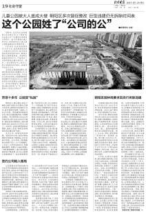 早春三月,坐落于朝阳北路北侧、黄杉木店路西侧的朝阳儿童主题公园纳新吐绿,居民惬意地享受着春日时光。然而在2017年之前,这里一度被一家企业办公楼占据。