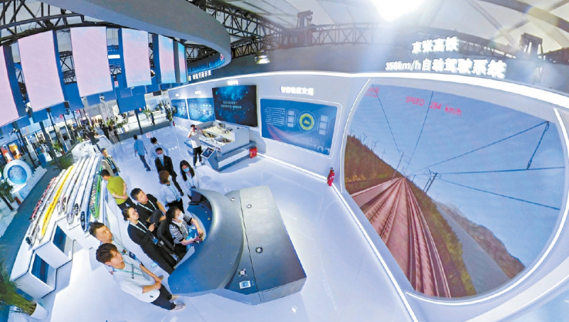 作为中关村论坛的重要组成部分,科博会展馆各领域高精尖成果异彩纷呈,图为市民体验京张高铁每小时350公里的自动驾驶系统。本报记者 潘之望 摄